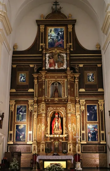 Así quedaba la iglesia desde 1895: “Con los retablos deteriorados de las capillas laterales se formó el retablo mayor, de tres cuerpos, colocándose en él, por este orden, las imágenes del titular, para la cual se utilizó otra, puesto que la antigua se quemó por completo; Nuestra Señora de Prado, puesta ahora en este sitio porque su Hermandad contribuyó con una crecida suma para la erección de dicho retablo; y la Santísima Trinidad, pequeña tarjeta de alto relieve, terminando con un remate circular en cuyo centro aparece un caliz, y á los extremos dos ángeles de talla, desnudos y de cuerpo entero.