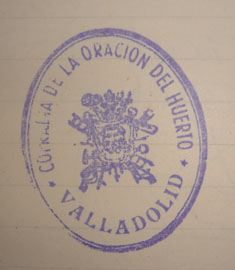 Este sello se utilizó hasta 1988. En 1989 se cambia el sello por otro de forma oval, formado por la representación de "La Oración del Huerto", rodeado por la inscripción COFRADÍA DE LA ORACIÓN DEL HUERTO-VALLADOLID- Finalmente en 1996 se vuelve a sustituir el sello. Con la aprobación de los nuevos Estatutos, la Cofradía recupera el título fundacional de LA ORACIÓN DEL HUERTO Y SAN PASCUAL BAILÓN, añadiéndose al nombre el término PENITENCIAL recogido en el Decreto de aprobación de los Estatutos. El nuevo sello, vigente en la actualidad, está formado por dos óvalos, en el izquierdo "LA ORACIÓN DEL HUERTO" y en el derecho la imagen de "SAN PASCUAL BAILÓN", en el centro la inscripción "COFRADÍA PENITENCIAL DE LA ORACIÓN DEL HUERTO Y SAN PASCUAL BAILÓN - VALLADOLID" Los Olivos Los olivos de adornaban el paso en los años 50 procedían de la finca que tenían los Ingleses en Canterac. A partir de 1964 el olivo será cedido por los Rvdos PP. Escoceses. Posteriormente del olivar de D. Ramón Bocos Cantalapiedra. En la actualidad, los olivos que se incorporan a los "pasos" proceden del jardín de las Hermanas Dominicas del Corpus Christi. Esculturas de "El Prendimiento" en la Feria AR&PA (2004) El noviembre de 2004, las escultura del Sayón del Farol, que había sido estrenada ese mismo año, y el Sayón de la Lanza que por entonces estaba en proceso de realización fueron expuestas en la Feria AR&PA celebrada en Valladolid. El "paso" de "El Prendimiento de Jesús en el Huerto de los Olivos" en la S.I. Catedral de Sevilla El "paso" procesional "El Prendimiento de Jesús en el Huerto de los Olivos" estuvo expuesto en la S.I. Catedral de Sevilla, en la X Edición de MUNARCO (Muestra Nacional de Artesanía Cofrade) desde el 27 de Enero al 5 de Febrero de 2006.